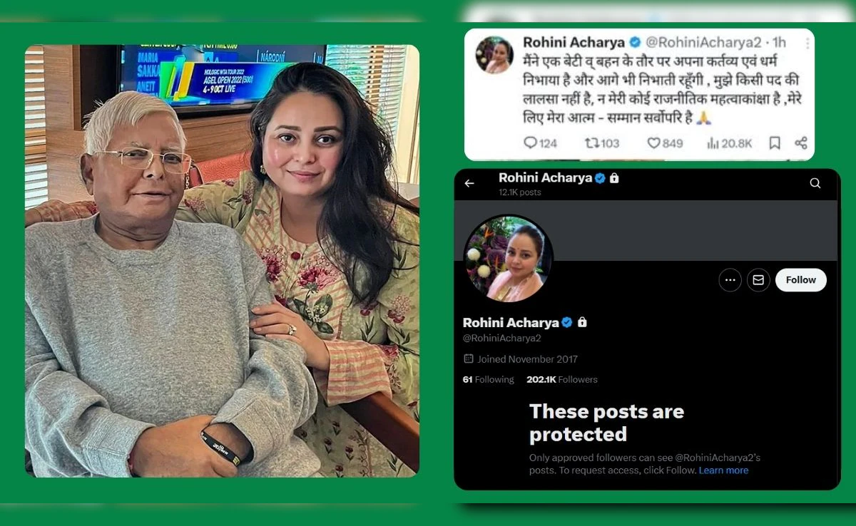 बिहार के पूर्व मुख्यमंत्री और राजद सुप्रीमो लालू प्रसाद यादव की बेटी रोहिणी आचार्य ने परिवार और राजनीति से नाता तोड़ने के बाद एक नया पोस्ट शेयर किया है। इस पोस्ट में उन्होंने परिवार के अंदर उत्पीड़न और अपमान के कई आरोप लगाए हैं। रोहिणी ने लिखा कि उन्हें जलील किया गया और मारने के लिए चप्पल तक उठाई गई, लेकिन उन्होंने अपने आत्मसम्मान और सच का समर्पण नहीं छोड़ा।